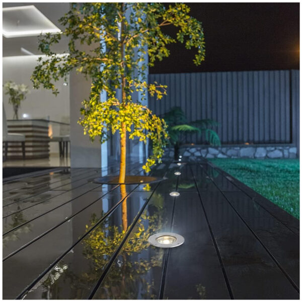El Foco Piso Exterior Embutido Porta GU-10 Large es la solución ideal para resaltar caminos, terrazas o jardines con una iluminación sutil y sofisticada. Diseñado para integrarse perfectamente en el suelo, brinda una luz ambiental adaptable (compatible con luz cálida o fría) que transforma tus exteriores en espacios seguros y con estilo. Durable y resistente, está hecho para acompañarte por años sin perder su encanto. Su tamaño es de 12 x 12 x 13 cms.