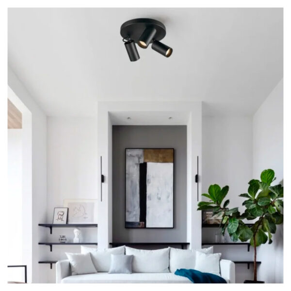 El Foco Sobrepuesto Con Base Redonda 3xGU-10 Altair III Negro es perfecto para combinar con tus espacios interiores e iluminar lo que quieras con su diseño único. Este foco cuenta con 2 focos para ampolleta GU-10, una base sobrepuesta redonda y sus medidas son de 240 x 240 x 90mm. Ilumina el interior de tu hogar creando espacios más armoniosos. Producto no incluye ampolleta.