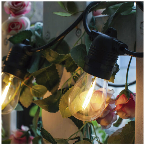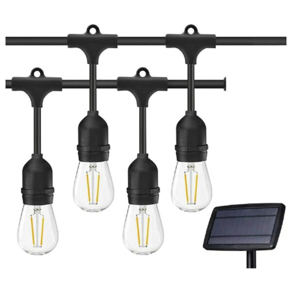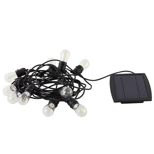 La Guirnalda De Luces Solar LED 10 Ampolletas Cálida 7mts le dará vida a tus espacios con una decoración única y llena de estilo. Estas guirnaldas contienen 7 metros de cables con 10 ampolletas vintage integradas de color cálido y un panel solar de 3,2W con dimensiones de 210 x 30 x 135mm. Su uso es exterior, se ajusta perfectamente al clima ya sea una ola de calor o a bajas temperaturas. Decora patio, eventos, jardines y mucho más con la mejor tecnología LED.