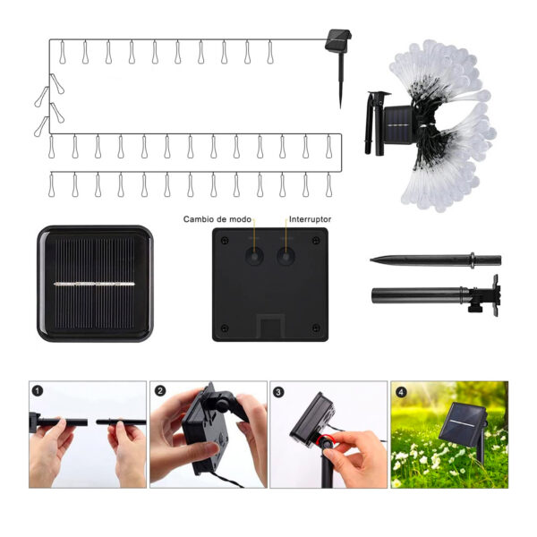 La nueva Guirnalda Solar Hada de Gotas 50 Led es tan brillante como aquellas que se conectan a la red eléctrica. Al ser solares son totalmente auto suficientes y permiten una fácil instalación en el lugar que más desees, su panel solar recargable está protegido en una resistente caja, lo cuál facilita su instalación en la interperie y podrás adornar tanto el interior del hogar como tú jardín o patio. Su diseño le entregará a tu hogar la sensación de que dejo de nevar y quedaron unas lindos copos de nieve derretidos.