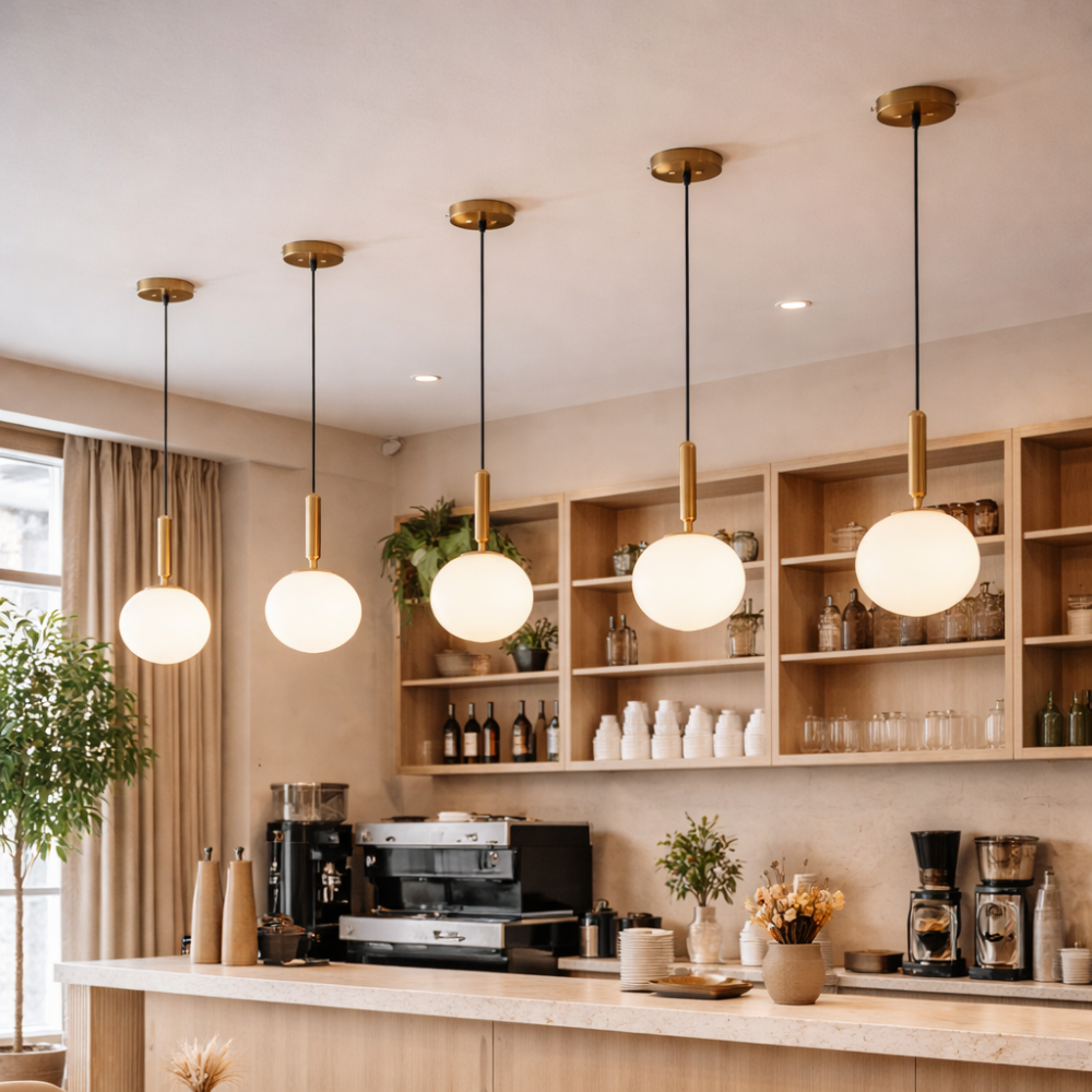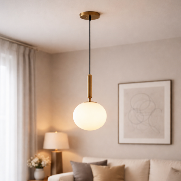 La Lámpara M11-200 Dorada E-27 destaca por su diseño moderno y minimalista, ideal para aportar calidez y estilo a espacios interiores. Su difusor esférico combinado con un soporte metálico crea una iluminación decorativa elegante, perfecta para livings, comedores, dormitorios o ambientes comerciales. Es compatible con ampolletas E27 (LED, filamento o estándar), permitiendo personalizar la intensidad y el estilo de luz según el ambiente deseado. Funciona con voltaje 180–240V.