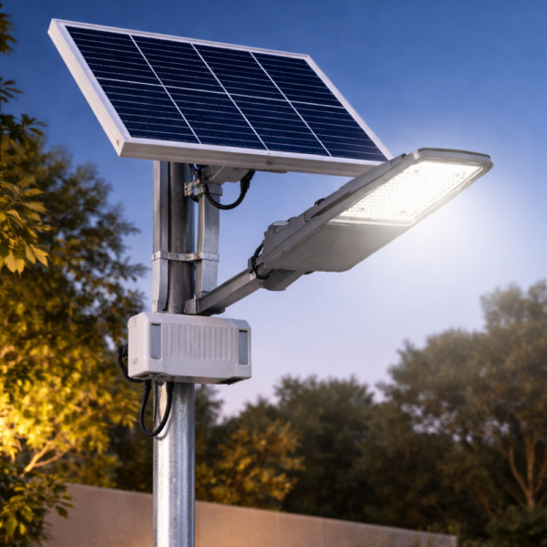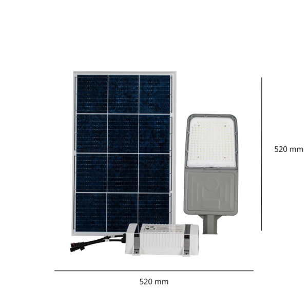 La Luminaria Pública LED Solar 50W ofrece iluminación potente y eficiente sin consumo eléctrico. Con luz fría 5700K y 180 lm, garantiza excelente visibilidad durante toda la noche. Incorpora batería de litio 12V 25Ah, photocell automática y un sistema inteligente de encendido por niveles, optimizando la energía disponible.