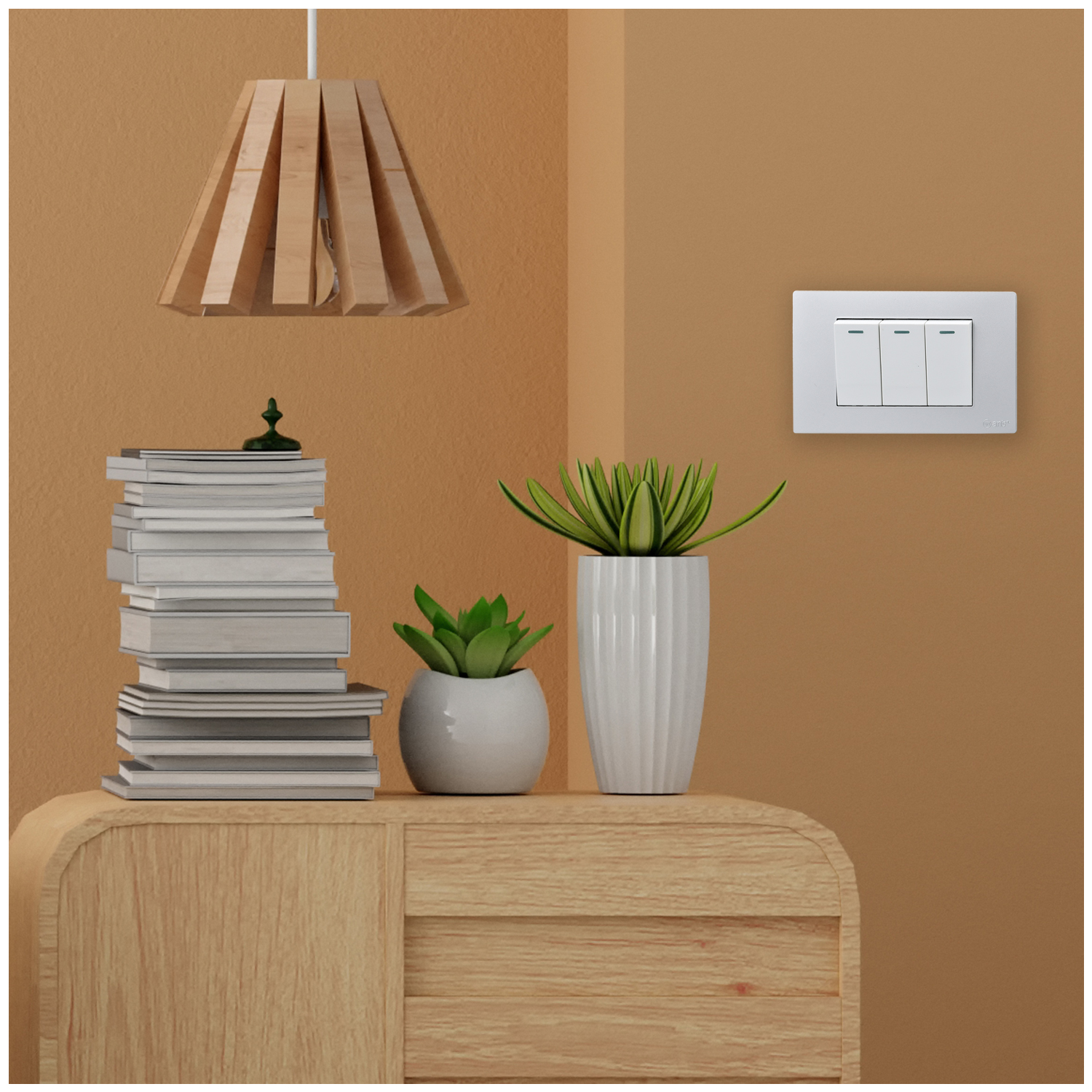 Este Pack 10 Interruptores Triple Metálico 9/12 16A ofrece un diseño moderno y resistente, ideal para hogares, oficinas y proyectos eléctricos. Su estructura robusta garantiza un uso seguro y eficiente, brindando funcionalidad y elegancia en cada encendido. Posee certificación SEC y su tamaño es de 12 x 2,7 x 7,5 cms.