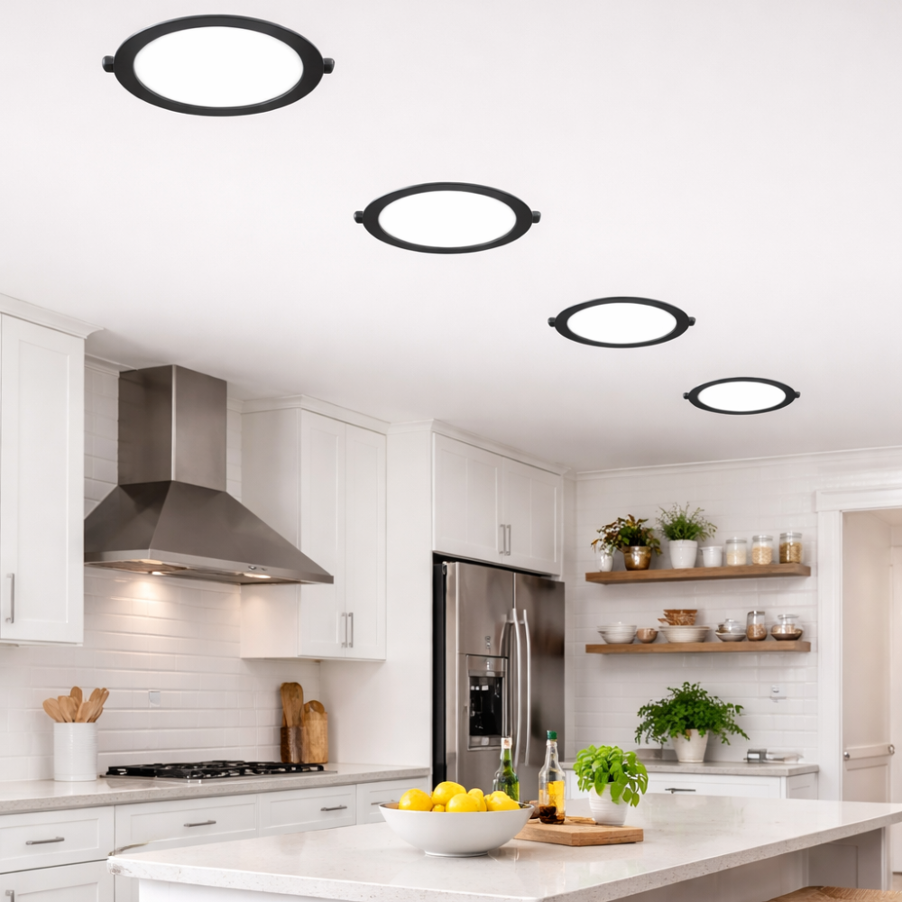 Pack 10 Panel Redondo LED Embutido Negro 18W Luz Fría