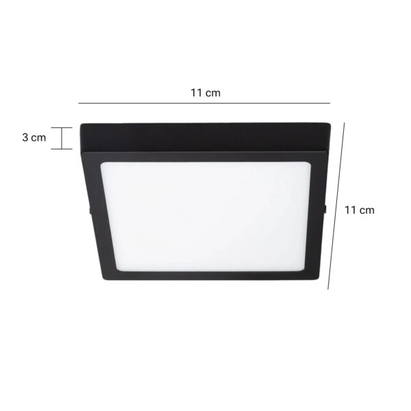 El Panel LED Sobrepuesto Cuadrado Negro PRO 6 W es una alternativa para iluminar y decorar tus ambientes ahorrando energía. Los paneles LED son opciones versátiles de iluminar con la mejor tecnología led. El color de temperatura de este panel puede ser de 3000k (Cálido), 4000k (Neutro) o 6000k (Frío), su potencia es de 6w, su cuerpo es de policarbonato y su instalación es en techos. Sus dimensiones son de 11 x 3 x 11 cms.